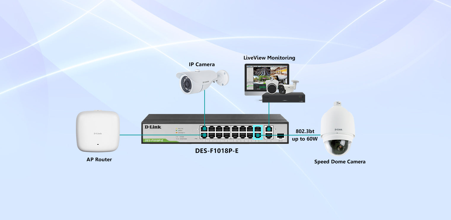 16-Port Fast Ethernet PoE Switch with 1 Gigabit Port + 1 Combo Uplink Port (HW : H3 & H4)