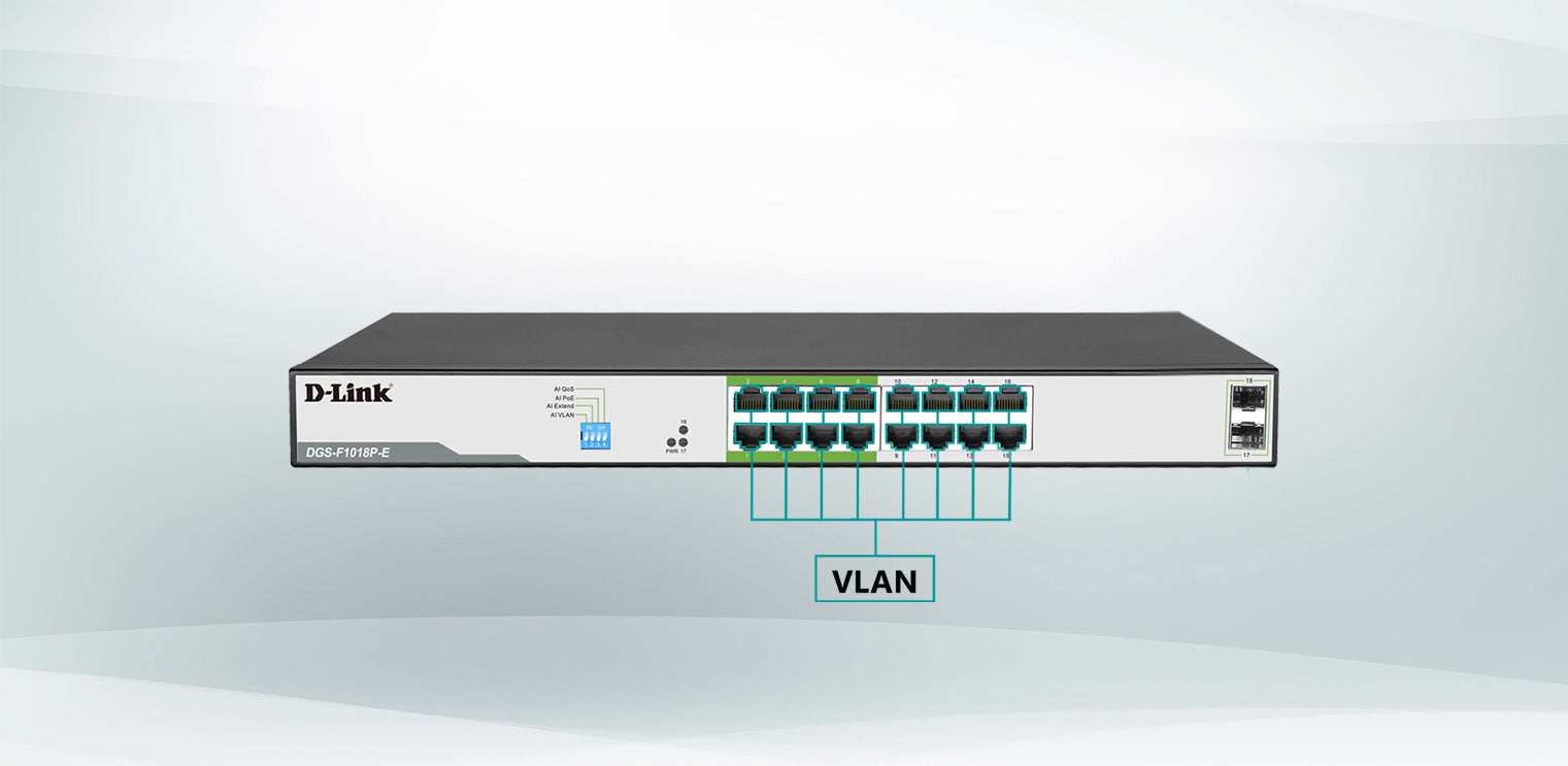 - • Smart Features: Extend, VLAN, QoS and PoE