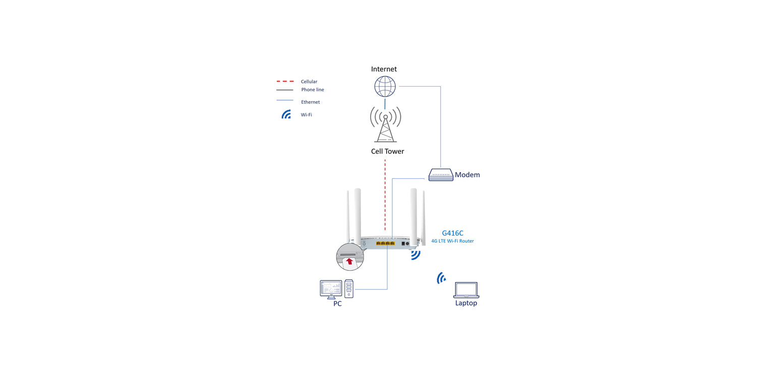 Easy Setup, Cable-free: just insert a SIM card for immediate Internet access