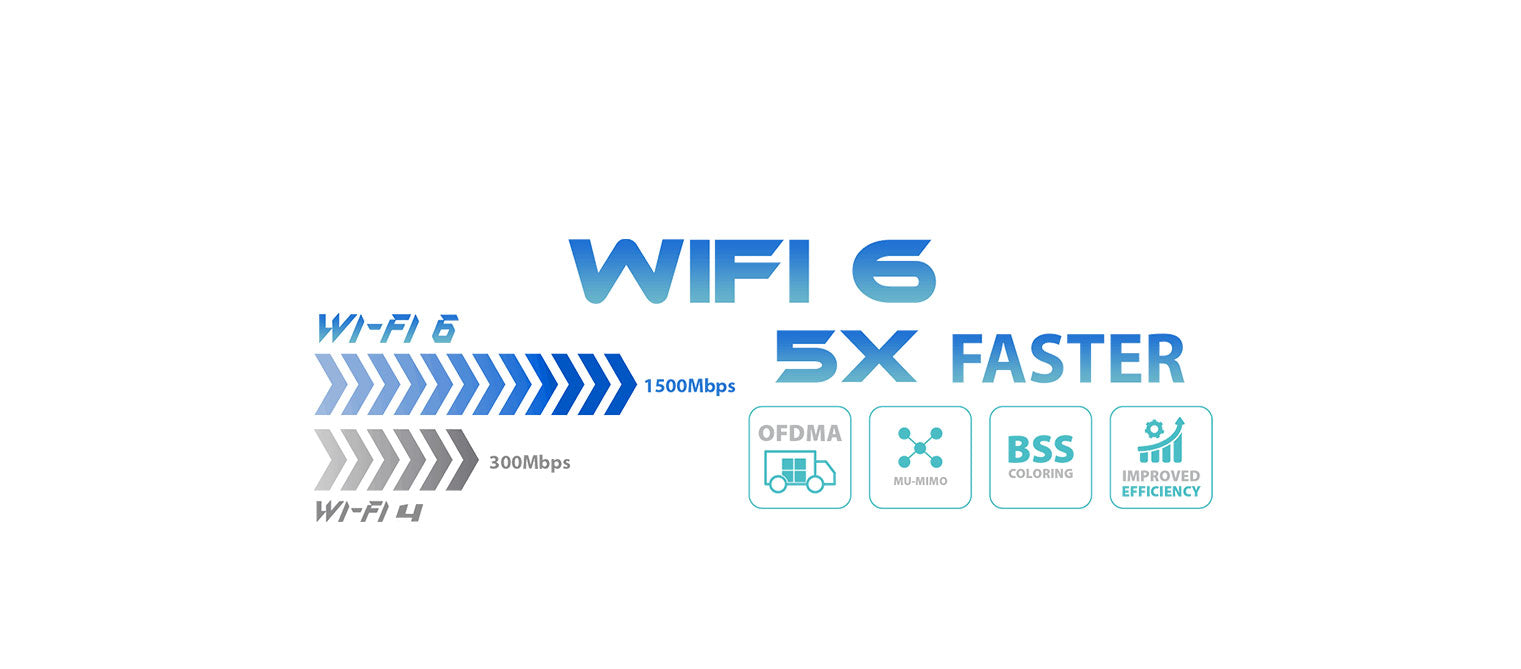 • Compliant with IEEE 802.11b/g/n/ac/ax 2.4GHz & 5GHz (Up to 1500Mbps) wireless technology