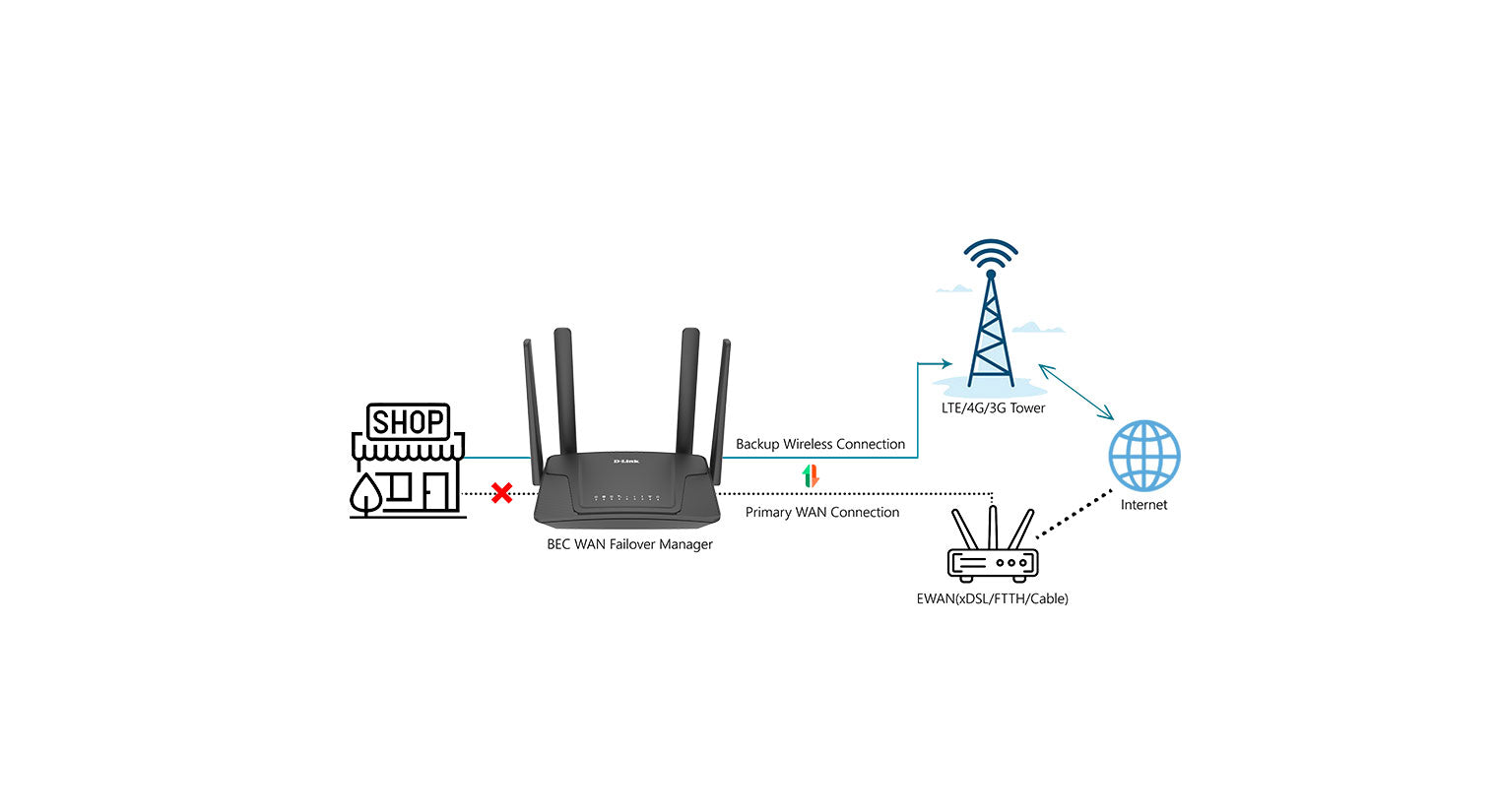 - Supports WAN Failover (3G/4G & Wired broadband connection) • In-built VPN Client for secure connection