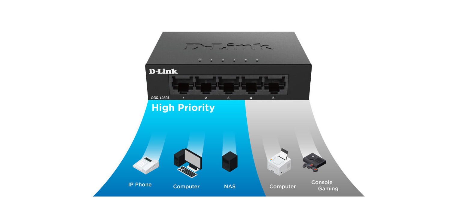 The DGS-105GL boasts peak value for home offices or SMBs in enabling easy and rapid network expansions, upgrading connections with a hassle-free plug and play switch solution.