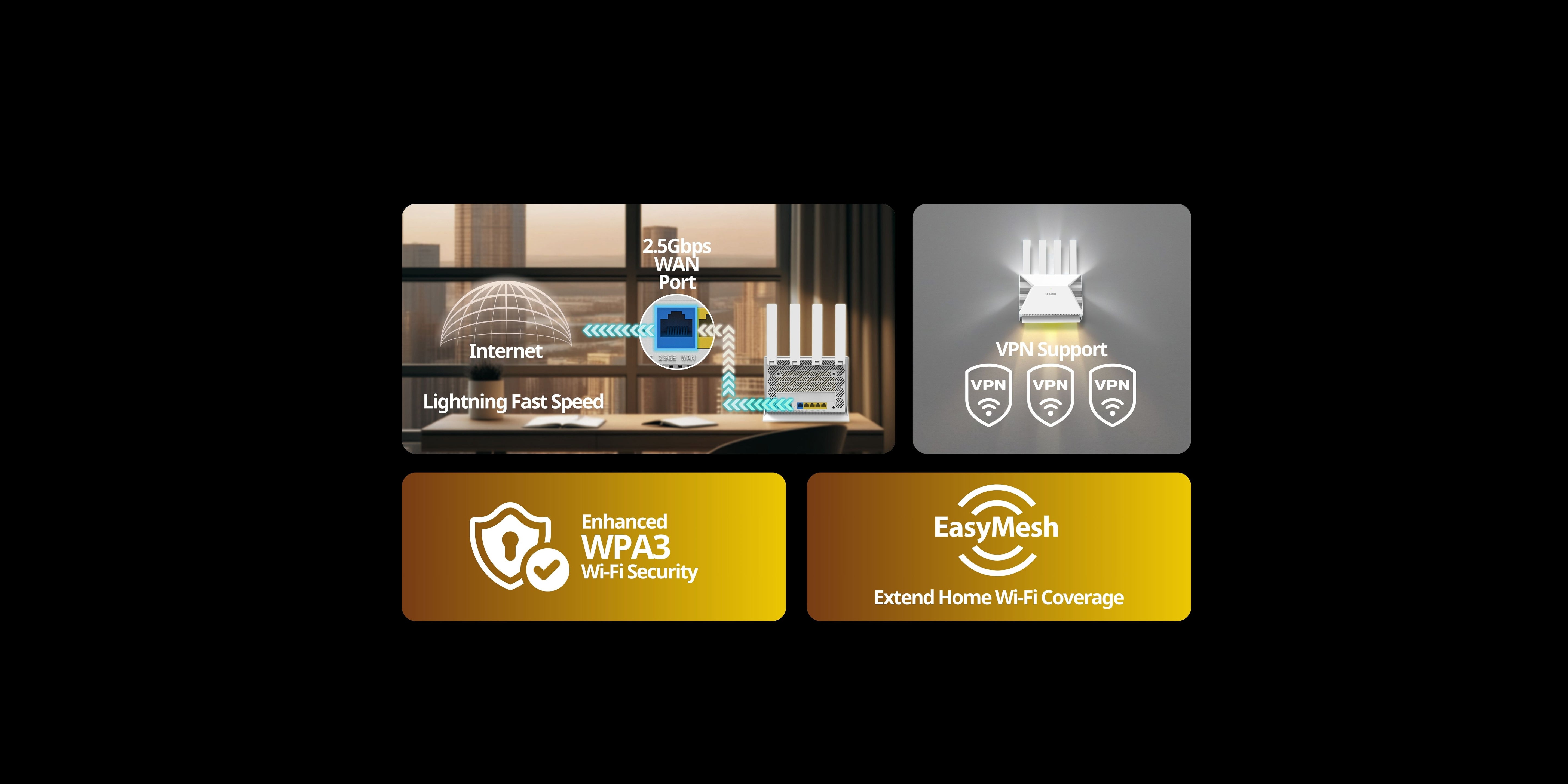 1x 2.5Gbps WAN port + 1x 2.5Gbps LAN port, 3 x 1Gbps LAN ports with link-aggregation offer high-speed data transmissions. This setup surpasses the 1G bottleneck, propelling your devices to optimal performance levels. -