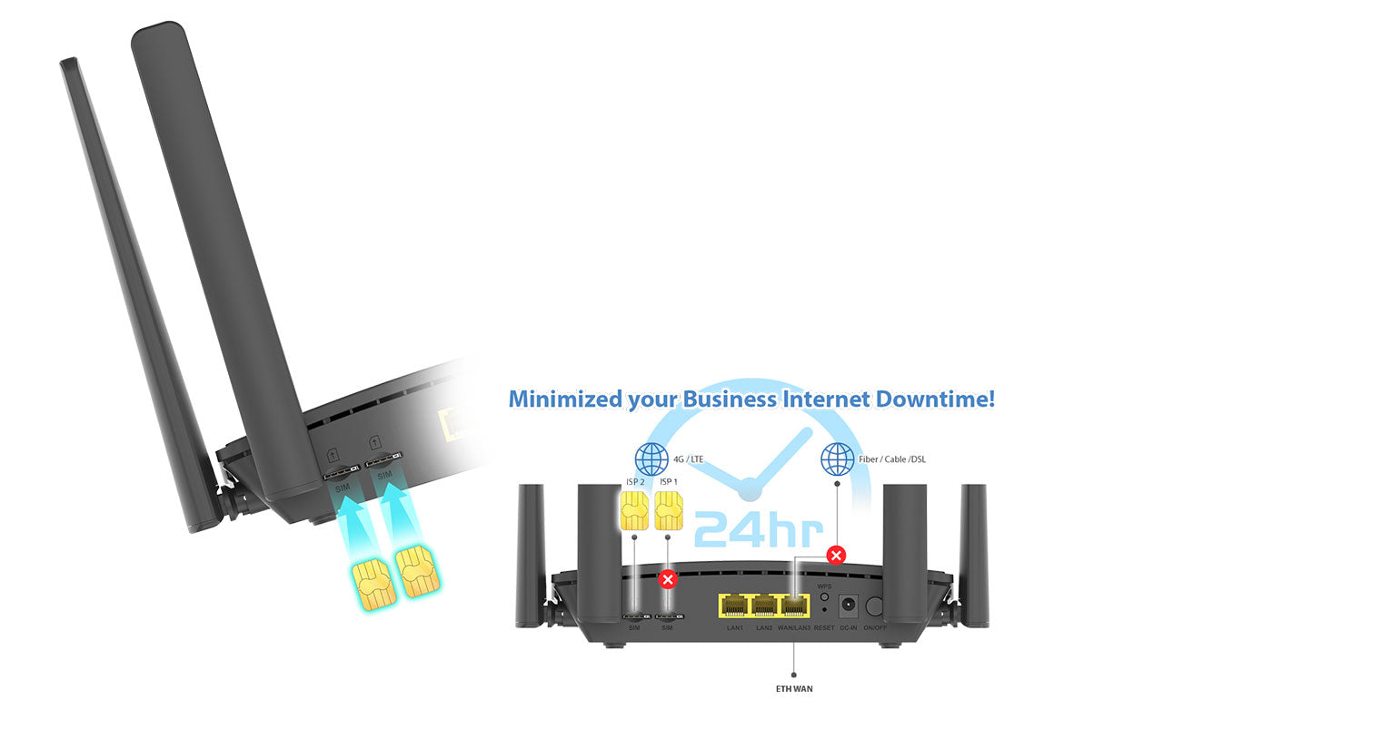 D-Link Mobile Wi-Fi Routers provide effortless, plug-and-play Wi-Fi. Enjoy robust, reliable internet access for your fast-paced lifestyle, whether you're using a Nano-SIM for immediate mobile Wi-Fi or a wired Ethernet connection for fixed setups. No complex configuration required.
